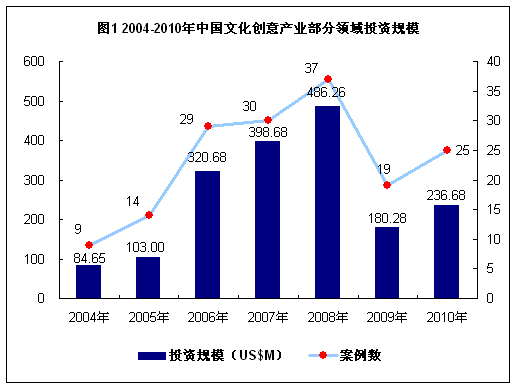 2009年以来,随着国务院《中国文化产业复兴规划》发布以来,中国文化创意产业再次“光鲜”的进入公众及投资界的视野。2010年 中国十七届五中全会,中国再次将文化创意产业提升到战略产业高度以期加速中国经济增长方式转变。作为世界历史文化古国的中国,并不短少文化,但是文化创意 产业在中国长久历史的温床中却迟迟不见预期的开展壮大。面对这一宏大的充溢诱惑力的产业,资本何去何从?目前,中国的文化创意产业假如是一个宏大的坑,那 资本方又将如何填坑掘金呢? 2009年文化创意产业投资理性回归,2010年少许投资多元落点 据清科研讨中心数据显现,2004-2010年间,中国文化创意产业局部曾经披露的投资事情为163起,曾经披露投资金额的案例为129起,披露投资金额总数为18.10亿美圆,均匀单笔投资金额为1403.28万美圆。