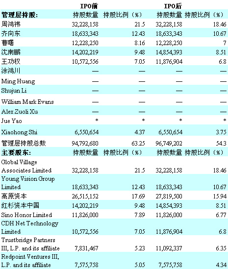中国风险投资网3月17日音讯,继3月15日向SEC提交申请,欲赴纽交所IPO之后,奇虎360日前发布其IPO发行价钱区间为10.5-12.5美圆 /ADS,方案发行至少1211万股美国存托股票(ADS),每2份ADS代表3份A类普通股股票,投资界记者得悉,其估值达15亿美圆。奇虎360此次 IPO拟融资2亿美圆,股票代码为“QIHU”,承销商为瑞银集团、花旗集团和Stifel Nicolaus Weisel。 奇虎360向SEC提交的文件显现,IPO前周鸿祎为公司第一大股东,持股比例为21.5%,IPO后其持股比例稀释为18.46%,此次IPO周鸿祎账 面财富近3亿美圆。其次是奇虎360的投资方高原资本及董事总经理涂鸿川,IPO前持股17.69%,为第二大股东,IPO后持股比例稀释为 15.94%,账面财富近2.4亿美圆;奇虎360总裁齐向东IPO前持股比例为12.43%,IPO后稀释为10.67%,账面财富达1.6亿美圆;红 杉中国合伙人沈南鹏IPO前持股比例为9.48%,IPO后稀释为8.51%,账面财富达1.3亿美圆;鼎晖投资合伙人王功权IPO前持股比例为 7.05%,IPO后则稀释为6.8%,账面财富达1亿美圆。