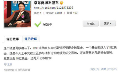 3月30日消息,京东商城CEO刘强东今天晚间在网易微博上透露,在该公...