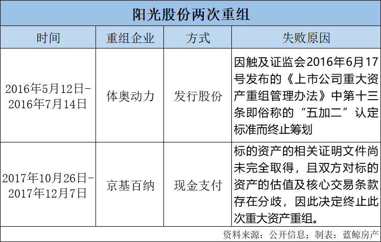 其实阳光股份并不是排斥所有外来者,其深谙卖资产不是长久之计,2016年至今,先后发起两起并购重组,以求“自救”。