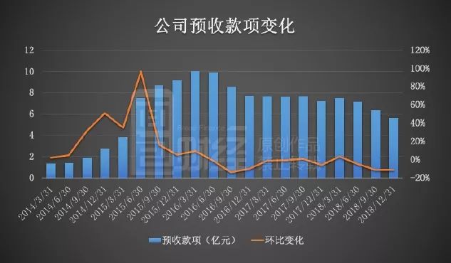 截止2018年底,公司预收款项余额约5.65亿元,与2017年底相比减少了21.63%,与2018年9月底相比下降11.02%。