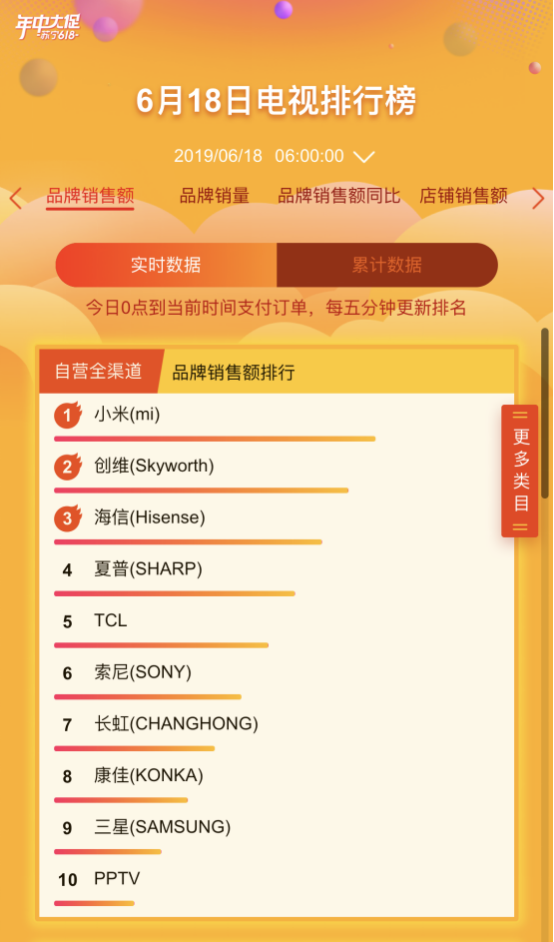 但是,在18日的早上6点的电视悟空榜上,经过一夜抢夺,互联网品牌小米却一跃而上成为黑马,傲视一众国产知名大品牌。