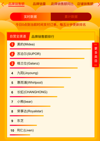 另据苏宁易购战报信息,6月18日苏宁空调全渠道销售额8秒破亿;冰箱洗衣机前1小时销售同比增长189.7%;厨房卫浴电器1小时销量同比增长183%;彩电1小时销量同比增长176%。